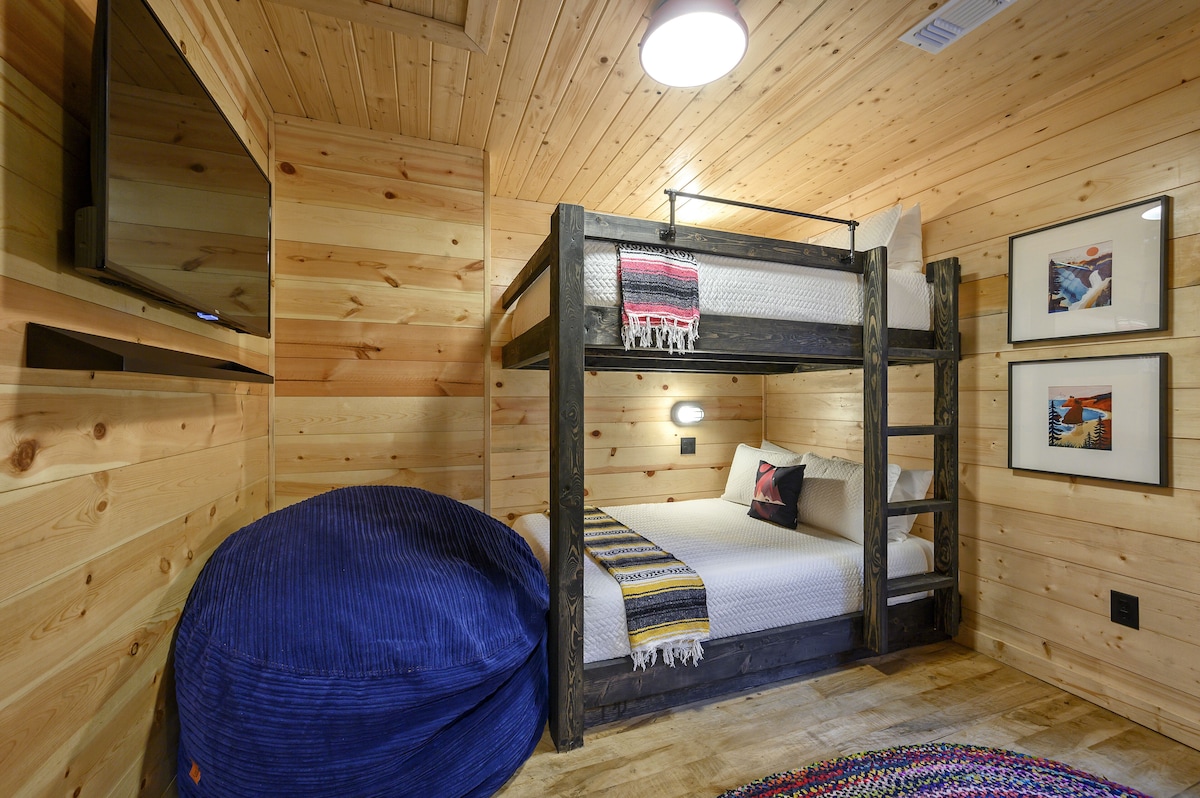 Bunk Room (sleeps 4-6) - one set of full-over-full bunk beds with Nectar mattresses and one set of twin-over-twin bunk beds with Tuft & Needle mattresses, sleeps a total of 4 adults or 6 kids, smart HDTV and en suite bathroom with tub/shower combo.